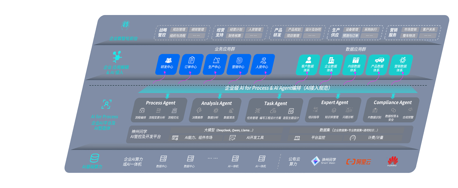 端到端的一站式AI工作空间深度融合了从企业战略规划到日常经营的全流程业务板块,,定向解决车企内部领域多、、、部门多、、、、链条长、、、场景碎片化等难题,,,支持车企快速构建以AI为核心的生产力写作体系,,,实现任务执行与AI能力的无缝集成与交互